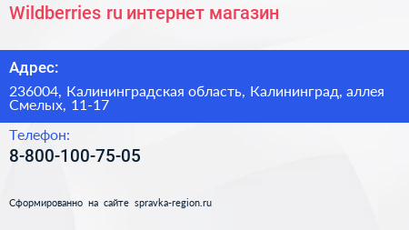Wildberries.ru, интернет-магазин по адресу 236004, Калининградская область, Калининград, аллея Смелых, 11-17 в дальнейшем Организация, размещена в следующих категориях: