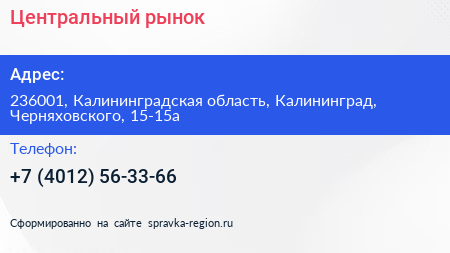 Центральный рынок по адресу 236001, Калининградская область, Калининград, Черняховского, 15-15а в дальнейшем Организация, размещена в следующих категориях: