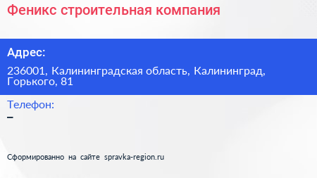 Феникс, строительная компания по адресу 236001, Калининградская область, Калининград, Горького, 81 в дальнейшем Организация, размещена в следующих категориях: