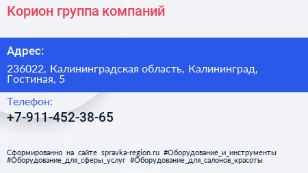 Корион, группа компаний по адресу 236022, Калининградская область, Калининград, Гостиная, 5 в дальнейшем Организация, размещена в следующих категориях: