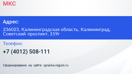 МКС по адресу 236023, Калининградская область, Калининград, Советский проспект, 159г в дальнейшем Организация, размещена в следующих категориях: