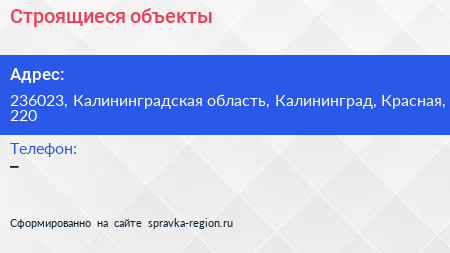 Строящиеся объекты по адресу 236023, Калининградская область, Калининград, Красная, 220 в дальнейшем Организация, размещена в следующих категориях: