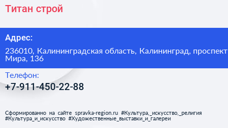 Титан-строй по адресу 236010, Калининградская область, Калининград, проспект Мира, 136 в дальнейшем Организация, размещена в следующих категориях: