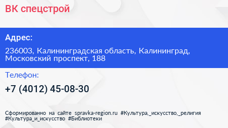 ВК-спецстрой по адресу 236003, Калининградская область, Калининград, Московский проспект, 188 в дальнейшем Организация, размещена в следующих категориях: