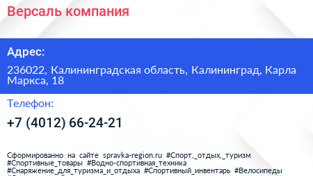 Версаль, компания по адресу 236022, Калининградская область, Калининград, Карла Маркса, 18 в дальнейшем Организация, размещена в следующих категориях: