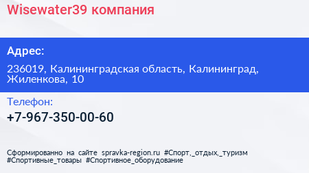 Wisewater39, компания по адресу 236019, Калининградская область, Калининград, Жиленкова, 10 в дальнейшем Организация, размещена в следующих категориях: