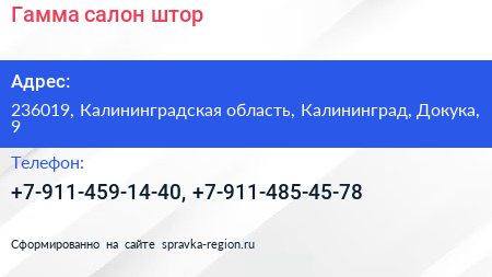 Гамма, салон штор по адресу 236019, Калининградская область, Калининград, Докука, 9 в дальнейшем Организация, размещена в следующих категориях: