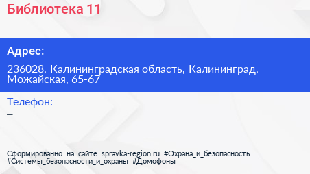 Библиотека №11 по адресу 236028, Калининградская область, Калининград, Можайская, 65-67 в дальнейшем Организация, размещена в следующих категориях: