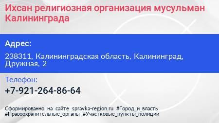 Ихсан, религиозная организация мусульман Калининграда по адресу 238311, Калининградская область, Калининград, Дружная, 2 в дальнейшем Организация, размещена в следующих категориях: