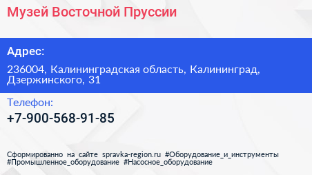 Музей Восточной Пруссии по адресу 236004, Калининградская область, Калининград, Дзержинского, 31 в дальнейшем Организация, размещена в следующих категориях: