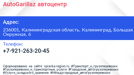 AutoGarillaz, автоцентр по адресу 236001, Калининградская область, Калининград, Большая Окружная, 6 в дальнейшем Организация, размещена в следующих категориях: