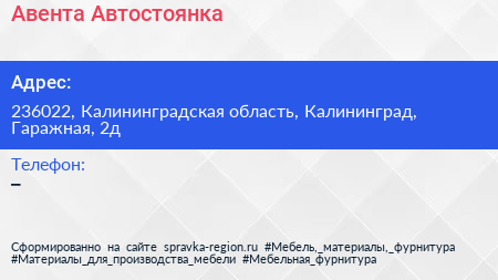 Авента, Автостоянка по адресу 236022, Калининградская область, Калининград, Гаражная, 2д в дальнейшем Организация, размещена в следующих категориях: