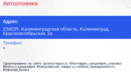 Автостоянка по адресу 236039, Калининградская область, Калининград, Краснооктябрьская, 2а в дальнейшем Организация, размещена в следующих категориях: