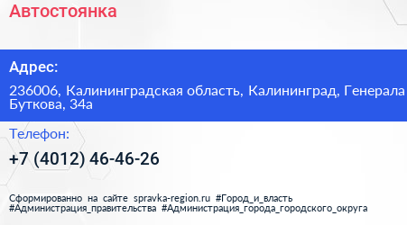 Автостоянка по адресу 236006, Калининградская область, Калининград, Генерала Буткова, 34а в дальнейшем Организация, размещена в следующих категориях: