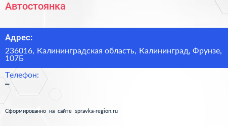 Автостоянка по адресу 236016, Калининградская область, Калининград, Фрунзе, 107Б в дальнейшем Организация, размещена в следующих категориях: