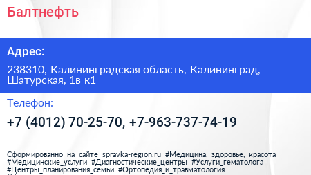 Балтнефть по адресу 238310, Калининградская область, Калининград, Шатурская, 1в к1 в дальнейшем Организация, размещена в следующих категориях:
