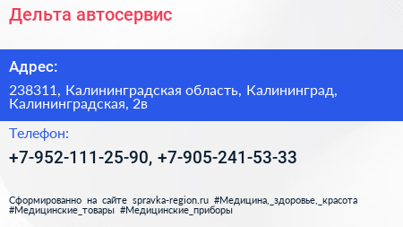 Дельта, автосервис по адресу 238311, Калининградская область, Калининград, Калининградская, 2в в дальнейшем Организация, размещена в следующих категориях: