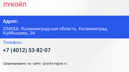 ЛУКОЙЛ по адресу 236016, Калининградская область, Калининград, Куйбышева, 36 в дальнейшем Организация, размещена в следующих категориях: