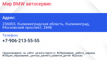 Мир BMW, автосервис по адресу 236003, Калининградская область, Калининград, Московский проспект, 184Б в дальнейшем Организация, размещена в следующих категориях: