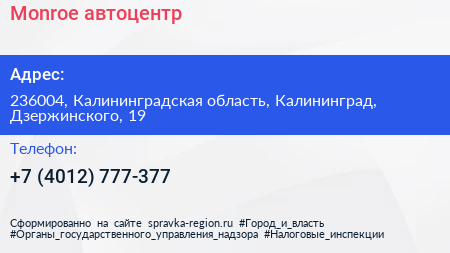 Monroe, автоцентр по адресу 236004, Калининградская область, Калининград, Дзержинского, 19 в дальнейшем Организация, размещена в следующих категориях: