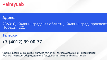 PaintyLab по адресу 236010, Калининградская область, Калининград, проспект Победы, 221 в дальнейшем Организация, размещена в следующих категориях: