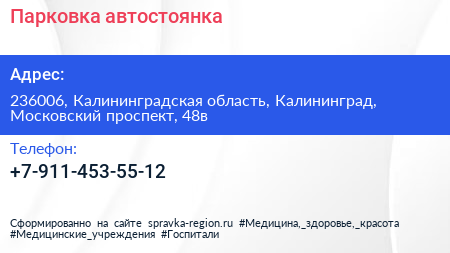 Парковка, автостоянка по адресу 236006, Калининградская область, Калининград, Московский проспект, 48в в дальнейшем Организация, размещена в следующих категориях: