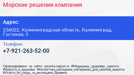 Морские решения, компания по адресу 236022, Калининградская область, Калининград, Гостиная, 5 в дальнейшем Организация, размещена в следующих категориях: