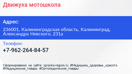 Движуха, мотошкола по адресу 236001, Калининградская область, Калининград, Александра Невского, 231а в дальнейшем Организация, размещена в следующих категориях: