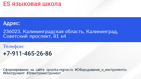 ES, языковая школа по адресу 236023, Калининградская область, Калининград, Советский проспект, 81 к4 в дальнейшем Организация, размещена в следующих категориях: