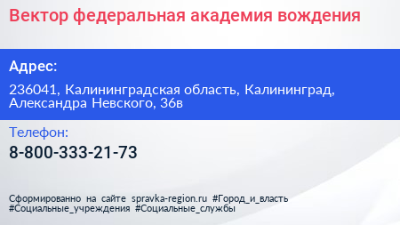 Вектор, федеральная академия вождения по адресу 236041, Калининградская область, Калининград, Александра Невского, 36в в дальнейшем Организация, размещена в следующих категориях: