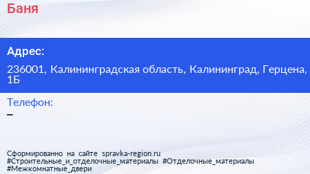Баня по адресу 236001, Калининградская область, Калининград, Герцена, 1Б в дальнейшем Организация, размещена в следующих категориях: