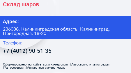 Склад шаров по адресу 236038, Калининградская область, Калининград, Пригородная, 18-20 в дальнейшем Организация, размещена в следующих категориях: