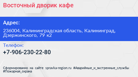 Восточный дворик, кафе по адресу 236004, Калининградская область, Калининград, Дзержинского, 79 к2 в дальнейшем Организация, размещена в следующих категориях: