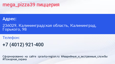 mega_pizza39, пиццерия по адресу 236029, Калининградская область, Калининград, Горького, 98 в дальнейшем Организация, размещена в следующих категориях: