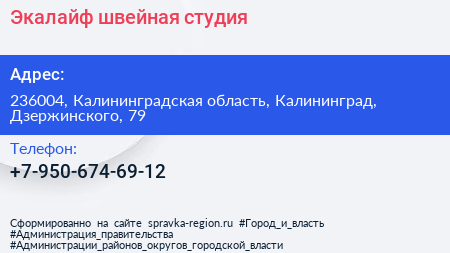 Экалайф, швейная студия по адресу 236004, Калининградская область, Калининград, Дзержинского, 79 в дальнейшем Организация, размещена в следующих категориях: