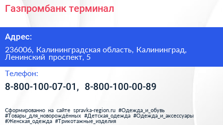 Газпромбанк, терминал по адресу 236006, Калининградская область, Калининград, Ленинский проспект, 5 в дальнейшем Организация, размещена в следующих категориях: