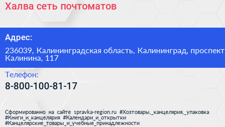 Халва, сеть почтоматов по адресу 236039, Калининградская область, Калининград, проспект Калинина, 117 в дальнейшем Организация, размещена в следующих категориях: