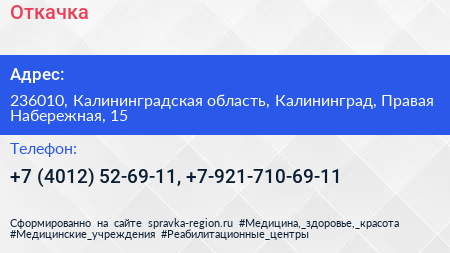 Откачка по адресу 236010, Калининградская область, Калининград, Правая Набережная, 15 в дальнейшем Организация, размещена в следующих категориях: