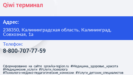 Qiwi, терминал по адресу 238350, Калининградская область, Калининград, Совхозная, 1а в дальнейшем Организация, размещена в следующих категориях: