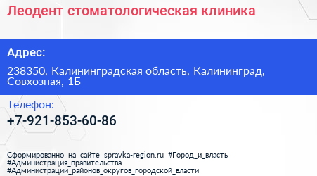 Леодент, стоматологическая клиника по адресу 238350, Калининградская область, Калининград, Совхозная, 1Б в дальнейшем Организация, размещена в следующих категориях: