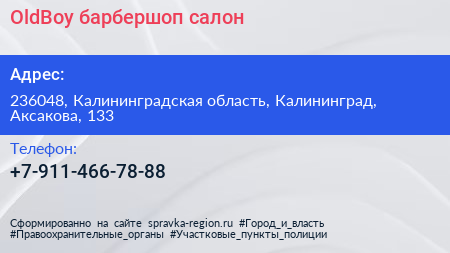 OldBoy, барбершоп-салон по адресу 236048, Калининградская область, Калининград, Аксакова, 133 в дальнейшем Организация, размещена в следующих категориях: