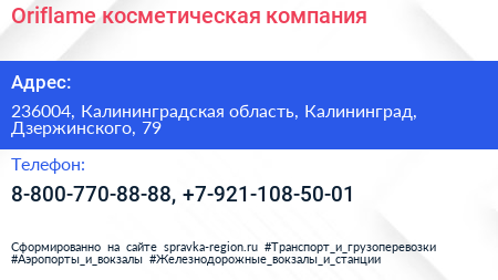 Oriflame, косметическая компания по адресу 236004, Калининградская область, Калининград, Дзержинского, 79 в дальнейшем Организация, размещена в следующих категориях: