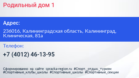 Родильный дом №1 по адресу 236016, Калининградская область, Калининград, Клиническая, 81а в дальнейшем Организация, размещена в следующих категориях: