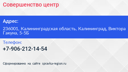 Совершенство, центр по адресу 236001, Калининградская область, Калининград, Виктора Гакуна, 5-5Б в дальнейшем Организация, размещена в следующих категориях: