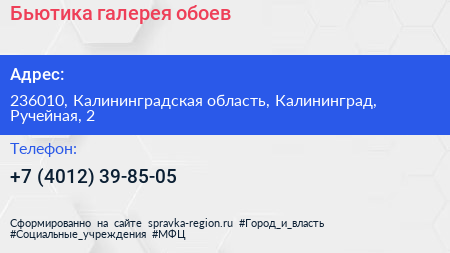 Бьютика, галерея обоев по адресу 236010, Калининградская область, Калининград, Ручейная, 2 в дальнейшем Организация, размещена в следующих категориях: