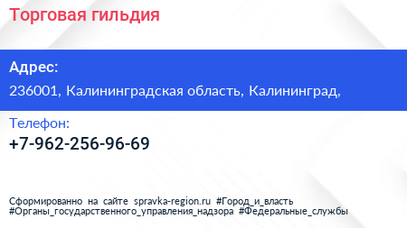 Торговая гильдия по адресу 236001, Калининградская область, Калининград, в дальнейшем Организация, размещена в следующих категориях: