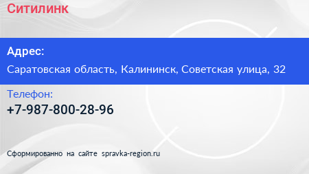 Ситилинк по адресу Саратовская область, Калининск, Советская улица, 32 в дальнейшем Организация, размещена в следующих категориях: