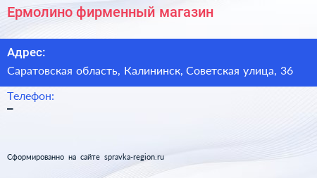 Ермолино, фирменный магазин по адресу Саратовская область, Калининск, Советская улица, 36 в дальнейшем Организация, размещена в следующих категориях: