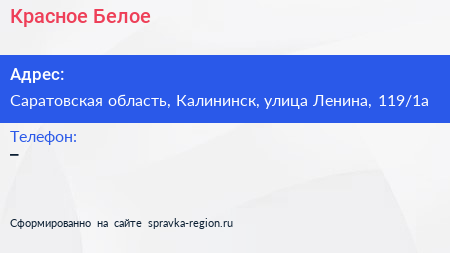 Красное & Белое по адресу Саратовская область, Калининск, улица Ленина, 119/1а в дальнейшем Организация, размещена в следующих категориях: