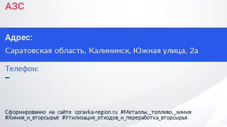 АЗС по адресу Саратовская область, Калининск, Южная улица, 2а в дальнейшем Организация, размещена в следующих категориях: